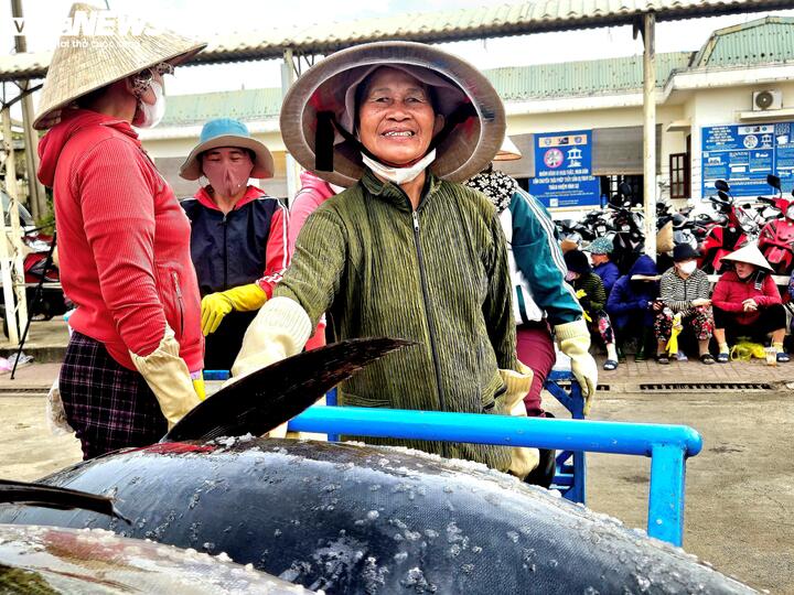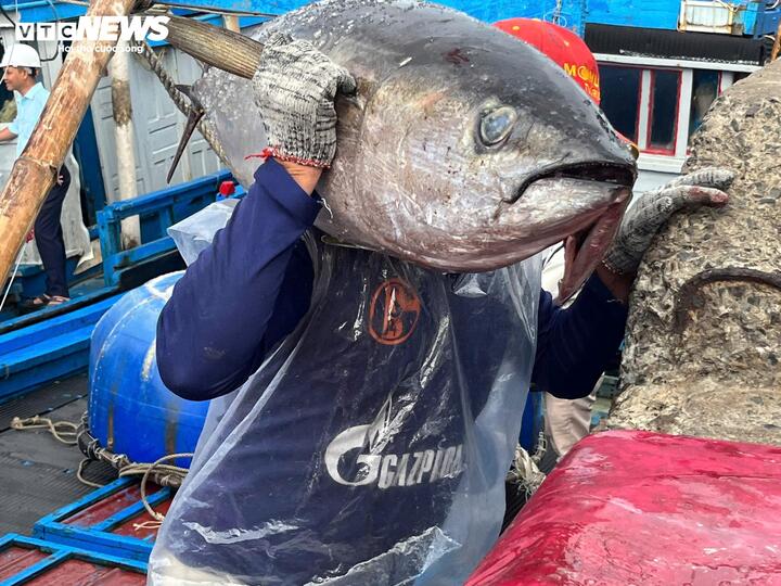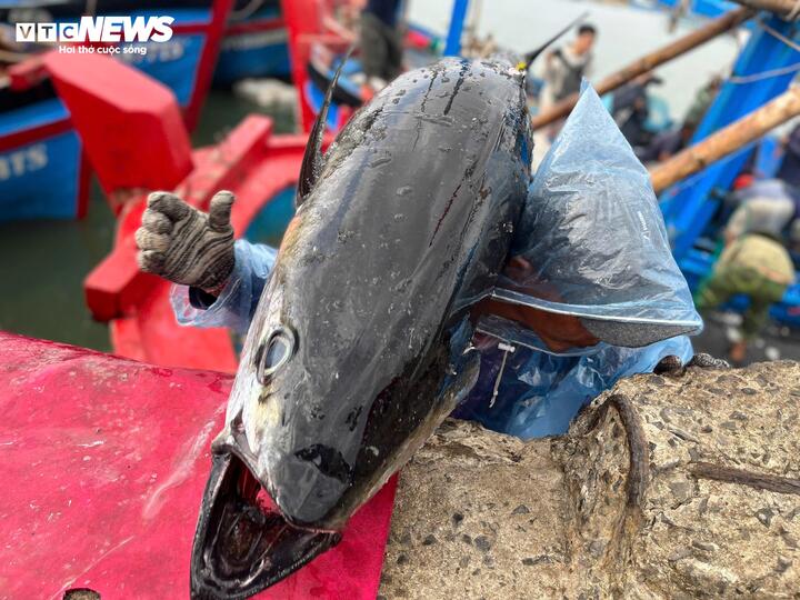 Cùng chung niềm vui, ngư dân Chế Văn Tất, thuyền trưởng tàu ĐK 96327 TS, chia sẻ rằng trong chuyến biển cuối năm, trung bình mỗi tàu đánh bắt được từ 40 đến 60 con cá ngừ đại dương, mang lại thu nhập khá.