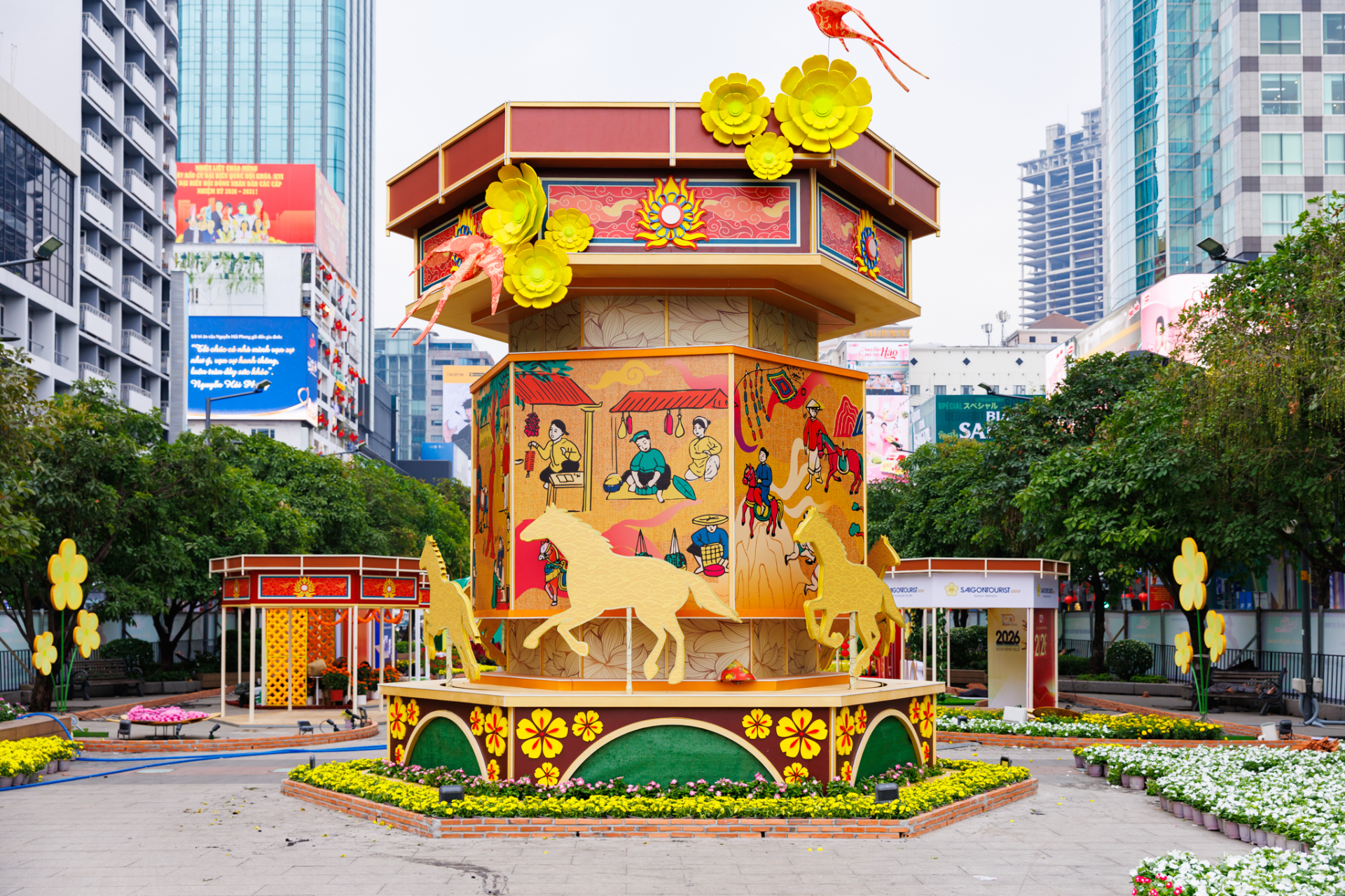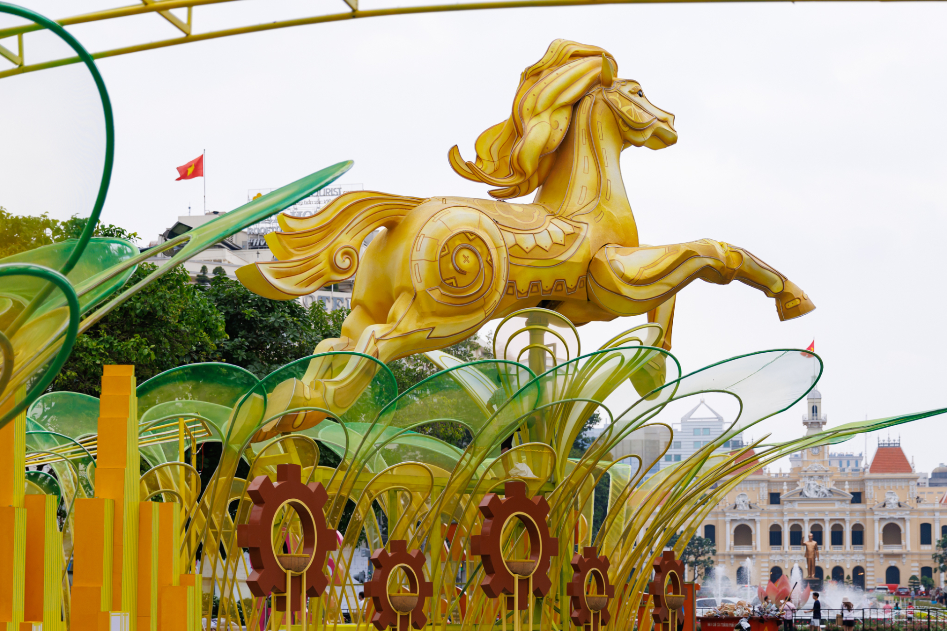 Linh vật ngựa và biểu tượng đặc trưng của thành phố được trang trí vô cùng ấn tượng. Ảnh: Đi Cùng Phúc, Anh Thơ